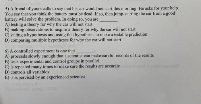Solved 5 A Friend Of Yours Calls To Say That His Car Would Chegg Com